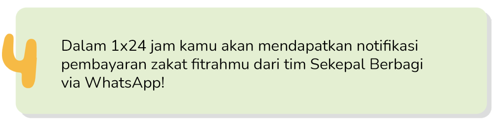 4. Dalam 1×24 jam kamu akan mendapatkan notifikasi pembayaran zakat fitrahmu dari tim Sekepal Berbagi via WhatsApp!